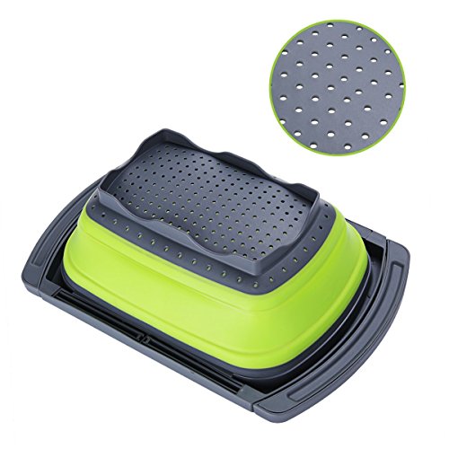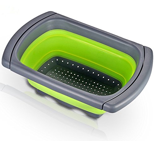 Collapsible Colander Over the Sink Kitchen Strainer Foldable Colander Silicone Filter-Green