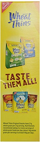 -. Feature : Discover the delicious 100% whole grain crunch of toasted Wheat Thins snacks. / Wheat Thins are toasted instead of fried and contain no cholesterol or high-fructose corn syrup, making them a smart snack choice for any occasion. / These delicious crackers pair perfectly with cheese, fruit, spreads, and more--but are great all on their own. / Each box is sealed to lock in freshness and great taste for gatherings, parties, or simply snacking around the house. / This package includes one 10-ounce box of Original Wheat Thins Crackers.