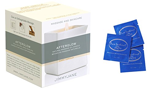 JIMMYJANE AFTERGLOW NATURAL MASSAGE OIL CANDLE (DARK VANILLA) + FREE PURE INSTINCT PHEROMONE INFUSED PERFUME COLOGNE (3 PACKETS)