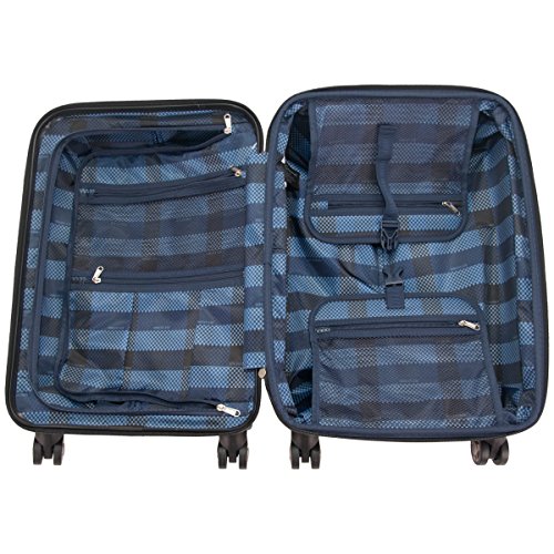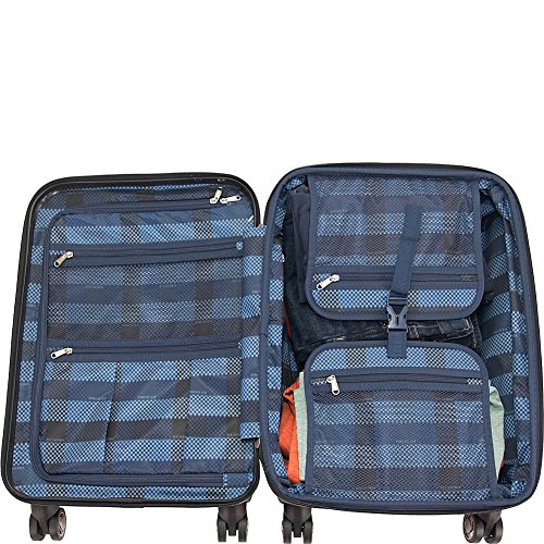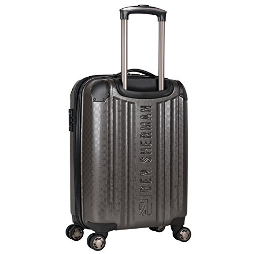 Studio : Ben Sherman Luggage Child Code Publisher : Ben Sherman Luggage Child Code Binding : Apparel Product Description 20" textured pap expandable 8-wheel upright/ carry-on. Made with zipper pullers that fit a TSA lock for ultimate security. Expands for larger packing capacity. 8-Wheel spinners allow smooth 360 degree rotation. Durable, dent resistant pap (polycarbonate ABS blend) with molded corner reinforcement for maximum impact resistance and a fully lined interior. Main compartment interior contains a side zipper pocket for smaller items and a buckled garment panel with two zippered mesh pockets. Under the lid interior includes a large u-shaped zipper pocket with two additional zipper pockets. Retractable top handle and bottom grab handle allow for easy lifting. Locking retractable trolley handle. Manufacturer 10 year limited warranty. Overall Dim's: 22.5" h x 14.0" w x 9.5"-11" D. Weight: 7.3 lbs. 0