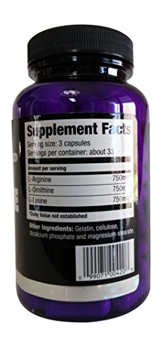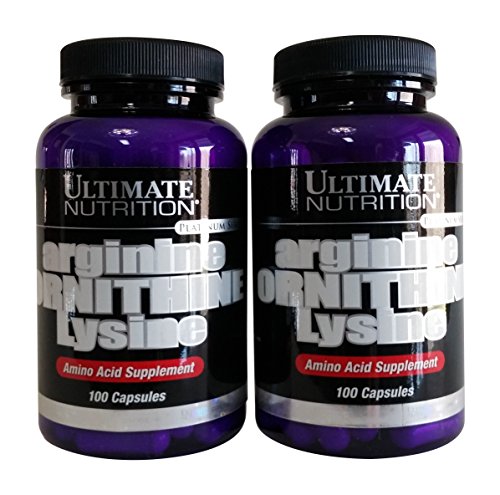 Ultimate Nutrition's Arginine Ornithine Lysine capsules provide 750 mg or each of these amino acids in a 3 capsule serving. One bottle contains 100 capsules for 33 servings. This pack of 2 bottles contains 200 capsules to provide 66 servings.