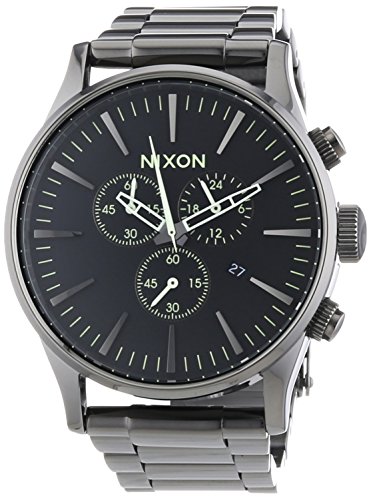 -. Title : Nixon A386-1885 Mens The Sentry Chrono Polished Gunmetal Lum Watch