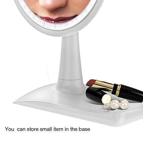 * Special Storage Base - The designer has designed a base for lady to store ready-to-use makeup appliances that It help to save time to finish exquisite makeup. It 's Humanized and fun design for makeup mirror on the market.
