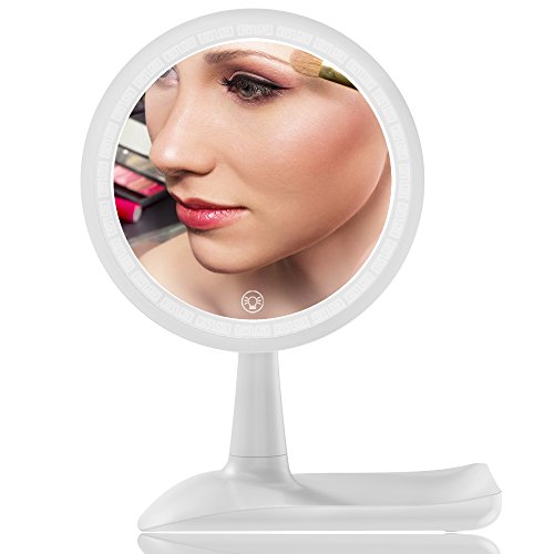RUIXINLI Makeup Mirror with Rechargeable LED Lighting (USB Charger) - Round Shaped Touchscreen Dimmable LED light Vanity Mirror (White)