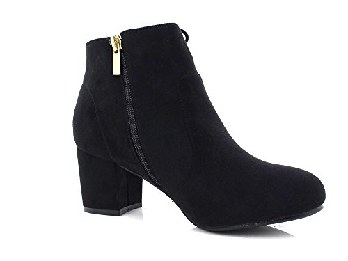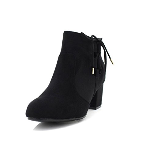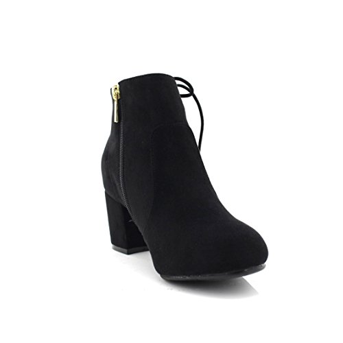 Barenx Women's with Side Lace Round Toe Mid Heel Microfiber Fabric Ankle Boots