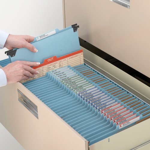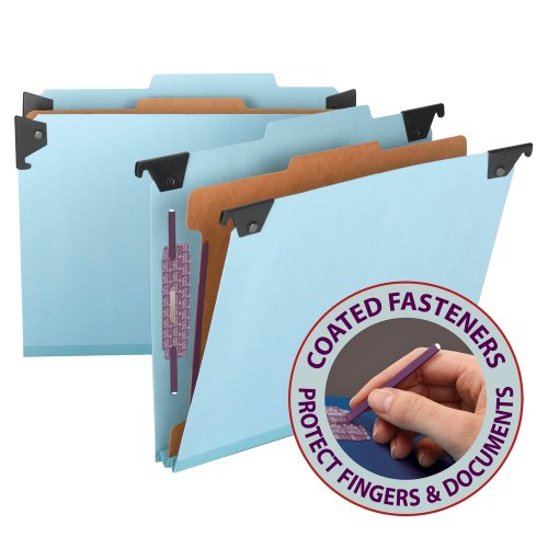 -. Title : Smead FasTab Hanging Pressboard Classification Folder with SafeSHIELD Fastener, 1 Divider, 2/5-Cut Built-in Tab, Letter Size, Blue 10 per Box (65105)