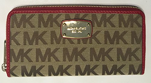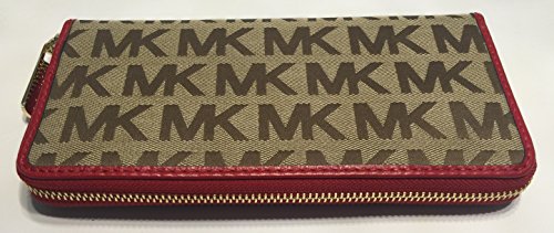 Bagity is the exclusive Seller for this bundled set consisting of Michael Kors ZA Continental Jet Set Signature MK Clutch Wallet Beige Ebony Red with diamond embossed polka dot ribbon bow Bagity Gift Box