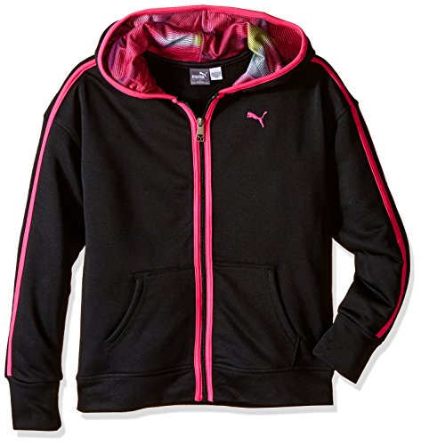 PUMA Big Girls' Hoodie W/Contrast Taping, Black, Large (12/14)