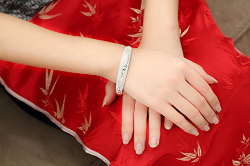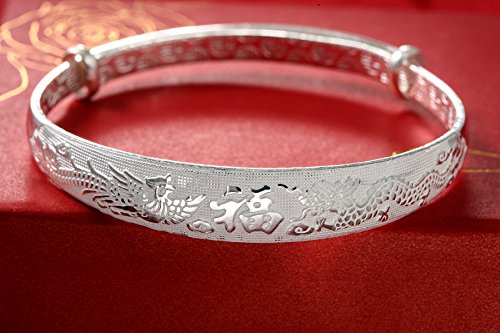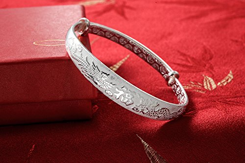 -. Title : Women's 999 Sterling Silver Dragon Phoenix Carved Bangle Bracelet 27g Weight for Wedding Gift