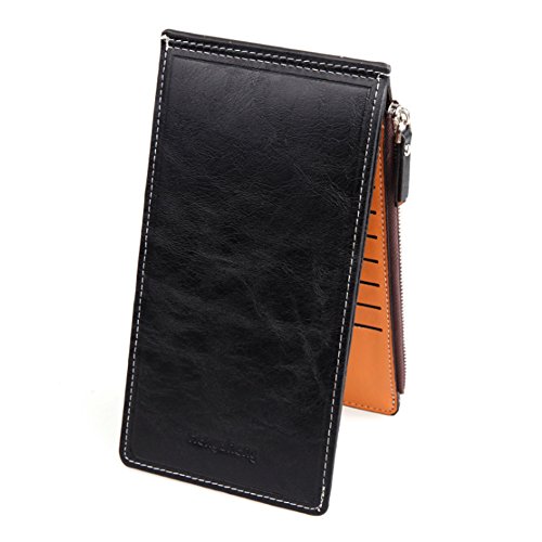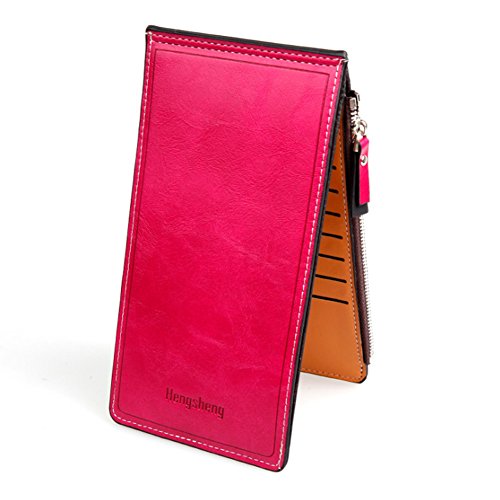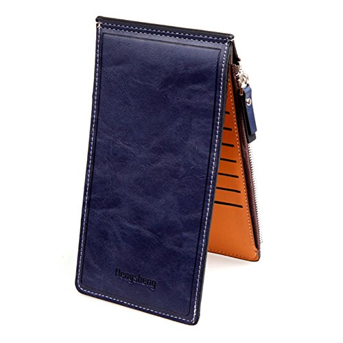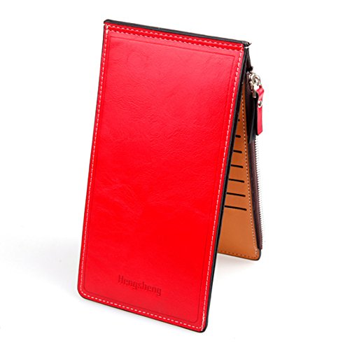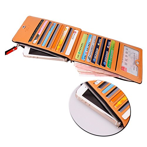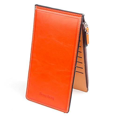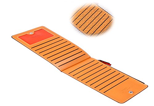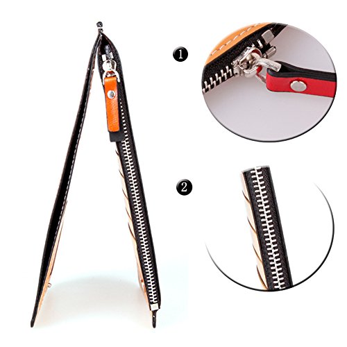 -. Feature : 【素材】PUレザー / 【サイズ】約10cm x 19cm x 1.5cm / 【収納数】カード用ポケット17ヶ所、ファスナーポケット(大)、ポケット(大) / カラー:レッド, グリーン, ダークブルー, ブラック, オレンジ, ローズレッド / スマートシンプルデザインのおしゃれな長財布、17枚ものカードを収納できるのも魅力的。スマートホンなども収納でき、お札も折らずに持ち運びできます。