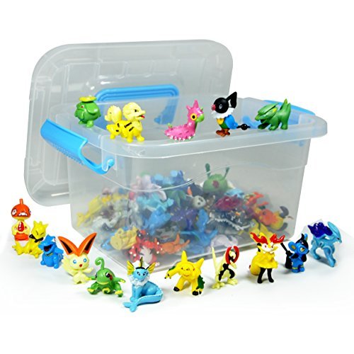 Idesire Lots 144pcs Pokemon Pikachu Monster Action Figures Multicolor 2-3CM with Plastic Storage Box