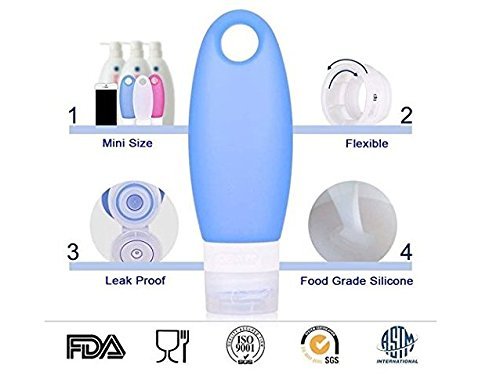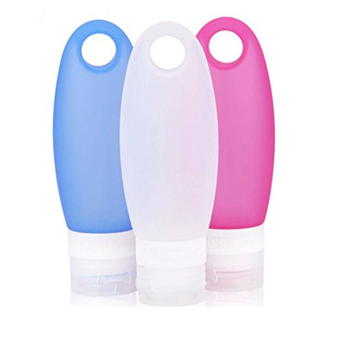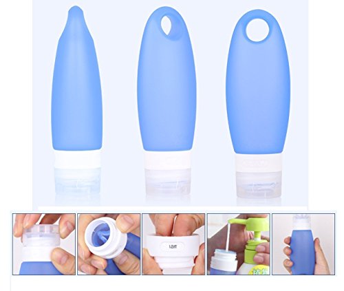 iNeibo 3.3 oz set of 3 Silicone Travel Bottles TSA Airline Carry On Approved Squeezable Refillable Travel Containers For Shampoo, Conditioner, Lotion, Toiletries (3, 3.3oz)