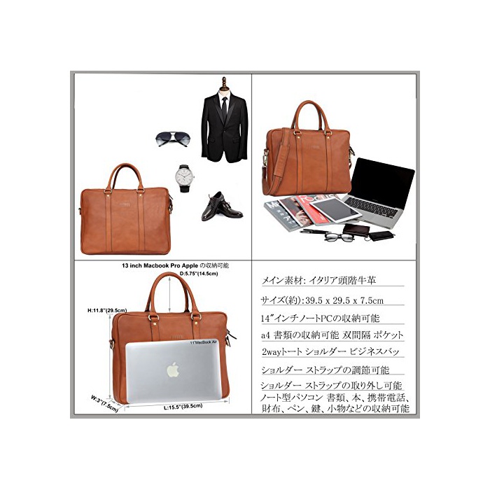 원본상품명: (バンニュス) Banuce ビジネスバッグ メンズ 本革 ブリフケス a4 出張 14ラップトップポケット付き イタリア 革 2way 手提げ ショルダ メッセンジャバッグ