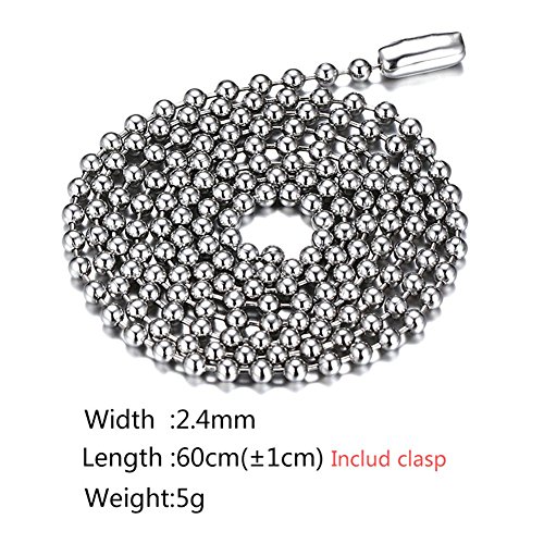 -. Feature : Width: 2.4 mm / Chain Length: approx. 24 Inch (60 cm) / No rust, no fading, no allergies / Metal Material: titanium steel(316l stainless steel) / Package: 1 x necklace