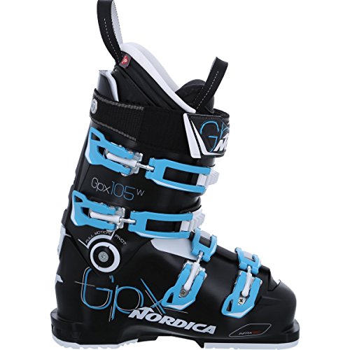 Studio : Nordica Publisher : Nordica Binding : Misc. Product Description While that collection of high-heeled chukkas and leopard print wedges may say, "I enjoy putting my feet into vastly uncomfortable positions for more than eight hours at a time," but the Nordica Women's GPX Pro 105 Ski Boot speaks otherwise. Crafted to not just secure your foot for a good ride, but to also provide ski-boot-quality-comfort and support, the GPX Pro 105 has a sturdy 105 flex and 98mm last, making it the dreamiest boot on the market. More specifically, the GPX follows Nordica's Tri-Fit philosophy, which combines a thermo-moldable liner with a shell that boot-fitters can shape with an Infrared box. The result is a ski boot that fits the exact contours of your foot shape for incredible comfort. The GPX also features Nordica's Full Motion Pivot that flexes laterally and horizontally ever so slightly (2mm to be exact) for effective responsiveness, snappier turns, and added safety. 0