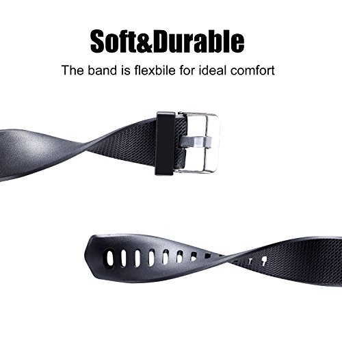 - Top Quality Material: The band is made from high performance TPU, and DO NOT contain harmful substance. It is soft, flexible and friendly to skin. 316L Stainless steel makes the buckle corrosion resistant. All of these enable the replacement band survive in water, sweat, rain, and splash.