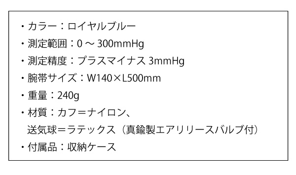 ●測定範囲:0~300mmHg