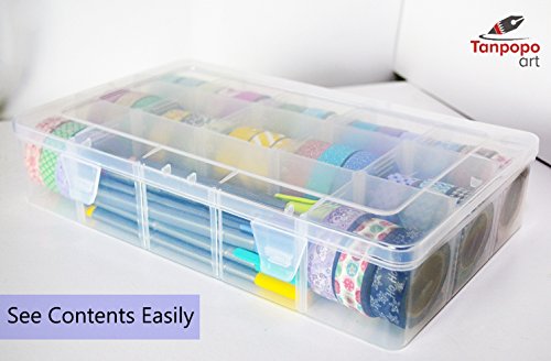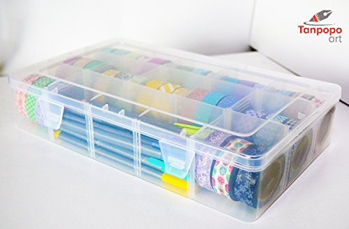 Washi Tape Storage Box by Tanpopo Art | Clear Box Organizer with Adjustable Compartments [Box only, Tapes not included]