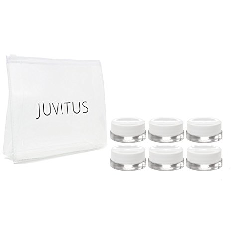 Clear Glass 7 ml Thick Wall Airtight Small Balm Sample Wax Concentrate Jars with White Foam Lined Smooth Lids (6 Pack) + Travel Bag