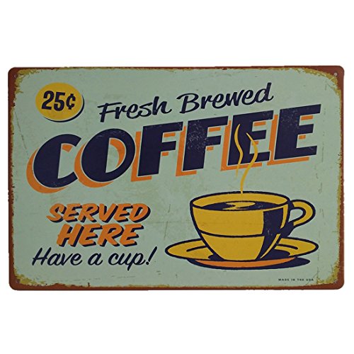 AiYahoo Fresh Brewed Coffee Served Here Have a Cup Retro Vintage Metal Sign 12" X 8"