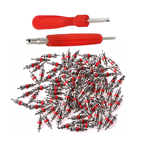 Lantee Tire Repair Tool Set - 2 in 1 Set Dual Single Head Valve Core Remover and 100 Pieces Car Truck Replacement Tire Tyre Valve Stem Core Part