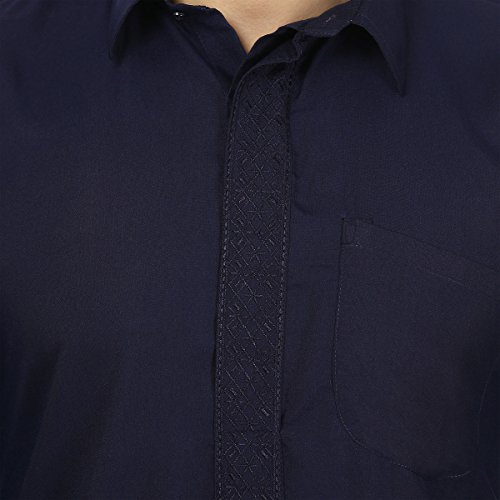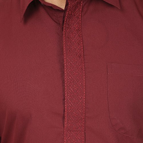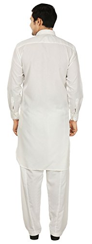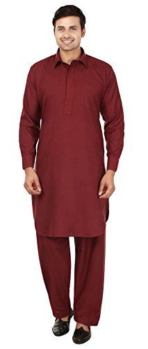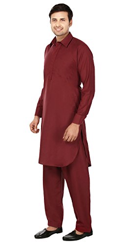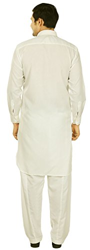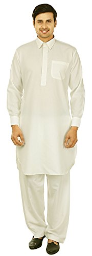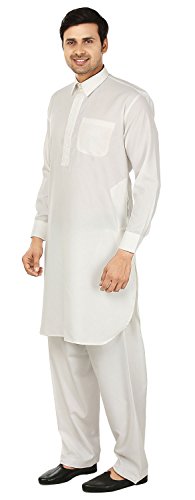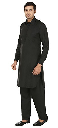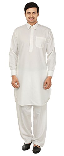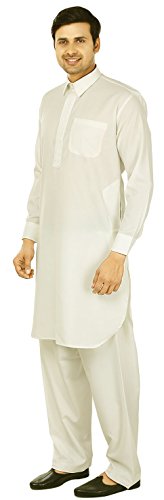 Binding : Apparel Product Description Elegant pathani kurta salwar set with elegant neck embroidery in polyester fabric, ethnic men's party wear from India. Loose comfortable fitting makes it a great wear. Comes with free size salwar pant (pajama) with drawstring in waist. Handwash recommended. Highly comfortable and eminently suited to all climatic conditions, its use is widespread throughout the Indian subcontinent. Kurtas are often worn with jeans. Please check the measurement as per information below before you order.