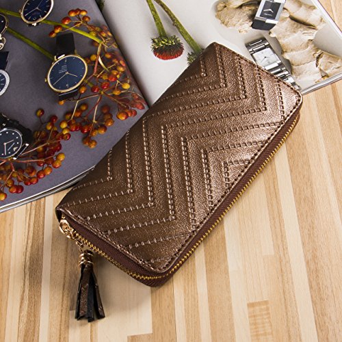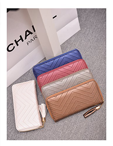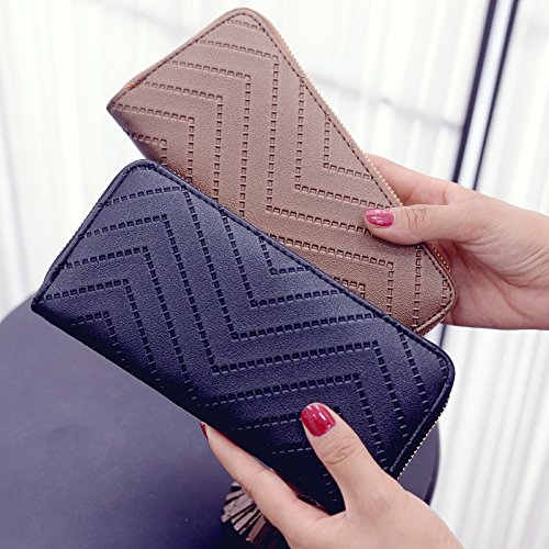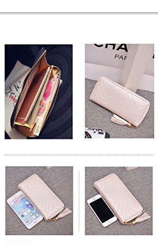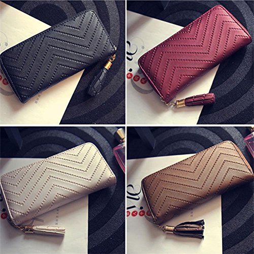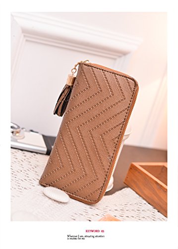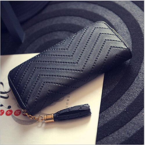 -. Title : Universalgoods Women Clutch Bag Ripple Pattern Spiraea Tassel Long Purse Zipper Wallets
