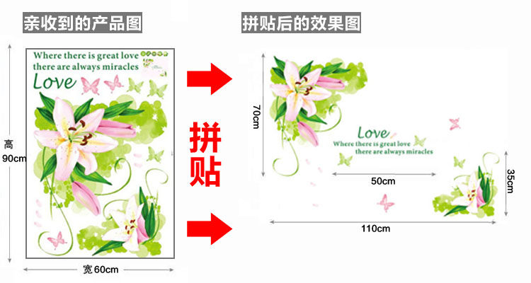 Style: Pastoral Pattern: Plant flowers Material: environmental protection PVC, the back with rubber, Denominated: tablets Wall Sticker Style: Plane Wall Stickers size: detailed dimensions refer to the effect of Image (unit: cm) Sizes, "you receive the goods and typesetting" size and "collage after size reference" Our tile size for reference only, you can combine according to room size freedom