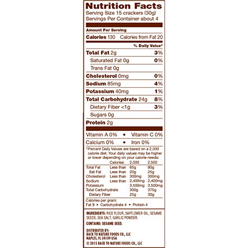 Back to Nature Crackers, Gluten-free, Sesame Seed Rice Thins, 4 Ounce