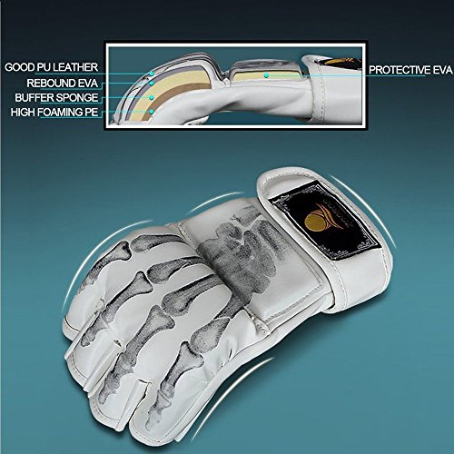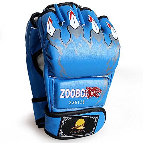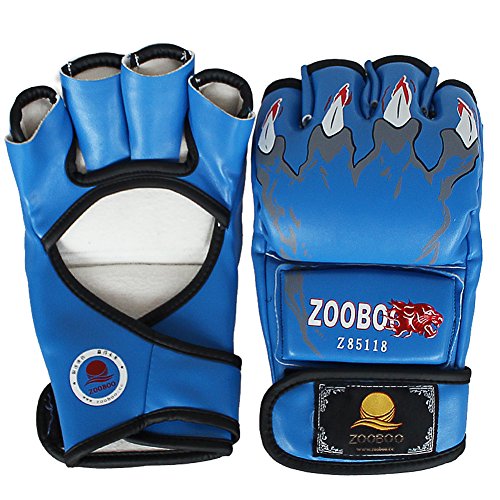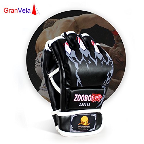 -. Binding : Misc. -. Brand : Granvela -. Feature : Good for Intense training: Designed for intense boxing training / Durability and strength: Premium synthetic leather and superior glove construction for lasting durability and strength, makes the gloves great for frequent training / Wrist support: The foam strap provides extra wrist support and protects your fist during intense training / Breathable: Perforations on the palms for increased breathability to keep you cool, to keep the sweat away and help you stay cool during the training process / Sizes: For Adults, one size fits most. Adjustable with velcro wrist band, 7.87" * 4.72" (L x W) -. IsAutographed : 0 -. IsMemorabilia : 0 -. Label : ZOOBOO -. Manufacturer : ZOOBOO -. MPN : Z85118 -. PartNumber : Z85118 -. ProductGroup : Sports -. ProductTypeName : SPORTING_GOODS -. Publisher : ZOOBOO -. Studio : ZOOBOO -. Title : ZOOBOO Half-finger Boxing Gloves with Velcro Wrist Band for MMA Muay Thai Training - Fit All Sizes Hand