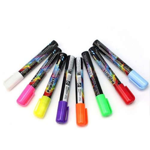 Feature : 3mm Fine Bullet Tip Liquid Chalk Marker Pens 8 Neon Colors / Color:*Blue, Green, Orange, Pink, Purple, Red, White, Yellow / (If you want to choose, please send email to tell us ,if no ,we will randomly dispatch. NOTE: Some items may dispatched in 3-5 business days)