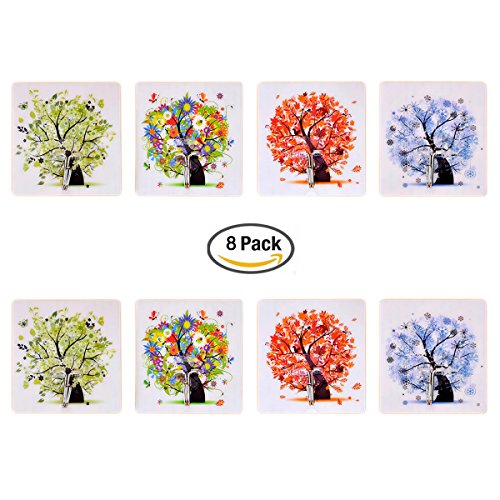 Seamless Hooks, Four Seasons Tree Hooks, Reusable Heavy Duty Seamless Sticky Hooks for Towel Loofah Bathrobe Clothes, No Scratch, Waterproof and Oilproof, Bathroom Kitchen, Wall Hooks (8 pcs)