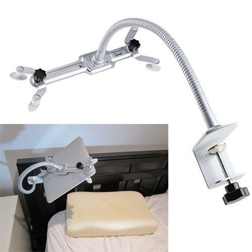 -. Binding : Electronics -. Brand : ChargerCity-Office Products -. Color : Silver -. EAN : 0186589001864 -. Feature : Flexible goose-neck metal hose allows operation in practically any position / Easy to install 2" wide C-Clamp base that mounts to any Bed frame, table, desk or counter top and allows you to use your iPad in practically any position and in any location / Lightweight and easy to fold and swivel of the way until you need it. / Aluminum Holder is compatible with all tablet 7" to 10" / ChargerCity Manufacture Direct Replacement -. Label : ChargerCity-Office Products -. Manufacturer : ChargerCity-Office Products -. Model : MT ST1 -. MPN : MT ST1. -. PackageQuantity : 1 -. PartNumber : MT ST1. -. ProductGroup : CE -. ProductTypeName : AV_FURNITURE -. Publisher : ChargerCity-Office Products -. Studio : ChargerCity-Office Products -. Title : ChargerCity 7-10-Inch Tablet Aluminum Bed Frame Clamp Lock Mount and 22-Inch Easy-Adjustable Gooseneck Arm -. UPC : 186589001864