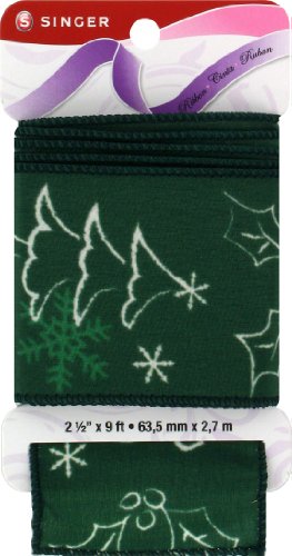 Singer Wired Edge Fabric, 2-1/2-Inch by 9-Feet, Christmas Tree Print, Jalapeno Green