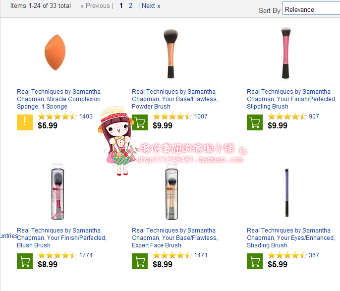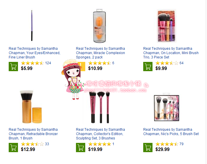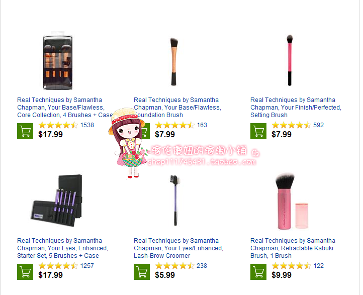 亲们~~ 便宜的,贵的总是有区别的!我家RT的化妆刷都是海伦自己从美国IHERB网站上海淘来的, 具体的价格亲们也可以访问www.iherb.com查询,散粉刷的售价是9.99美金, 另外还需国际运费和10%的关税,所以,我的售价其实抛去成本,利润很低!如果希望买到正品, 这个价格其实是正常的!亲们也可以问我索要订单截图和物流信息, 海伦都很乐意提供, 我的宗旨是给亲们带去正品的REAL TECHNIQUES的产品!哪怕现在淘宝上那些所谓的低价,还有恶意的差评已经影响到我的销量, 海伦傻妞的海淘小铺还是坚持开店的初衷, 把正品的REAL TECHNIQUES带给各位亲们~~ 谢谢!