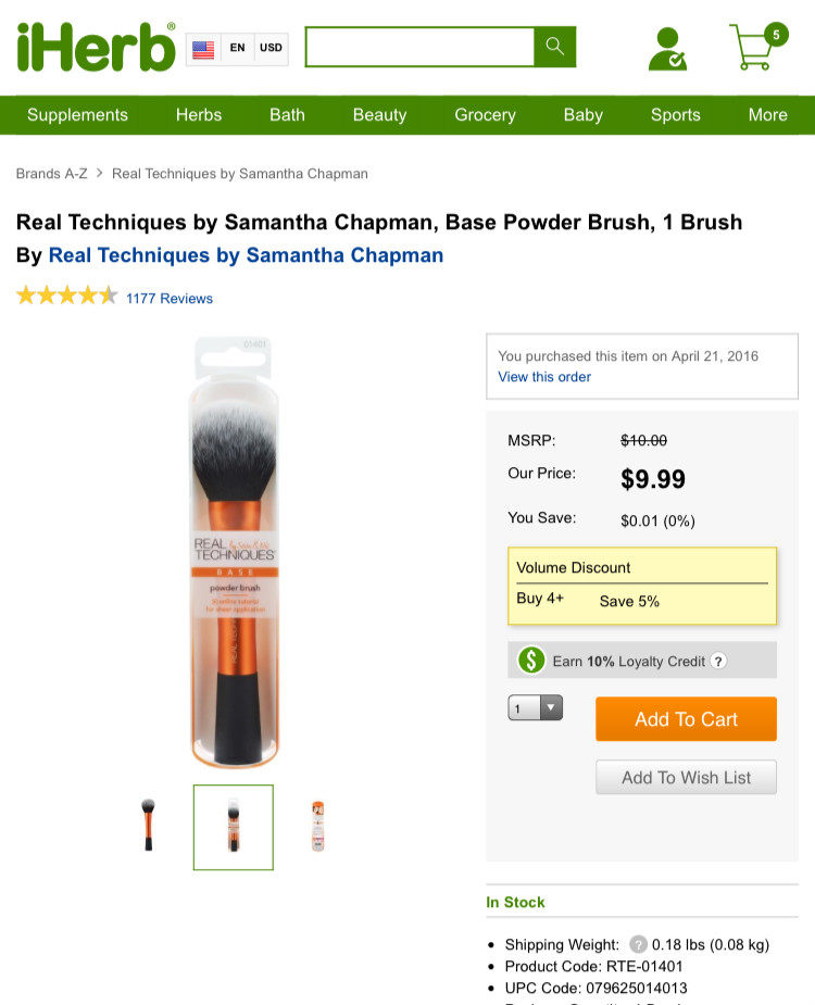 以下是real technqiues的产品在美国IHERB上的售价截图: