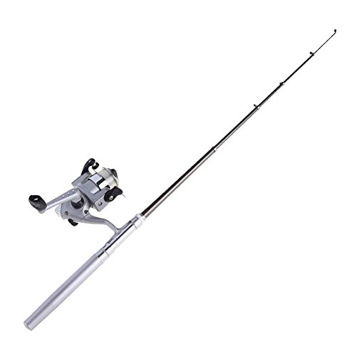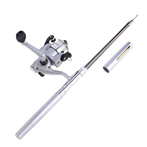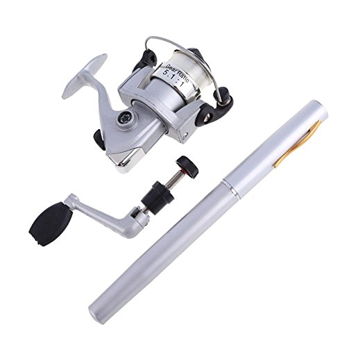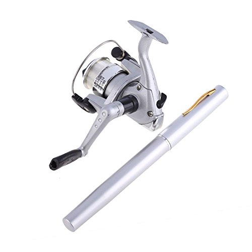 Chinatera Mini실버 포터블 알루미늄 합금 태클(Tackle) 포켓 펜 해수 낚시 로드 폴+릴 라인