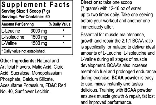 -. Feature : Scientifically Validated 2:1:1 Ratio / 6 Grams of BCAA's Per Serving / MUSCLEFUEL: Perfect Muscle Fuel Support / LEANMASS: Muscle Growth Activator / MYORECOVERY: Hyper-Active Muscle Recovery