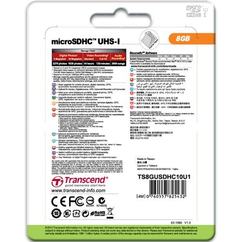 -. Title : Transcend TS8GUSDHC10U1 8GB MICROSDHC CLASS10 U1,MLC,600X