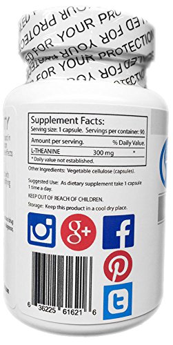 -. Feature : L-Theanine | Pure | Nootropics | 300 mg | 90 Capsules / Amino Acid from Green Tea / Cancels out negative side effects of caffeine / Boosts dopamine and serotonin levels / Amplifies Alpha Brainwaves - Meditation Nootropic