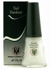 Studio : Quimica Alemana Publisher : Quimica Alemana Binding : Misc. Product Description Nail strengthener that, besides forming a protective barrier, prevents chipping, peeling and splitting of your nails. Instructions for use: Shake before use. Apply only to clean and dry nails. To start the treatment, apply a thin coat from the center of the nail down to the tip once a week. Let it dry and paint the nail with your favorite nail polish. After three applications, as the nail gets stronger, brush one thin coat covering the whole nail. Use once weekly. Protect the skin around the cuticles with cream. Caution: Can cause some discomfort on first use. If you feel pain, burning or persistent discomfort, remove it immediately from all nails and suspend its use. Avoid contact with cuticles and skin. Warning: Not meant for daily use. Keep out of reach of children. Keep away from heat and flames. Flammable. This product is formulated to be used once a week. Please note that, as is the case with any cosmetic product, excessive use can cause unwanted side effects. And again: if you haven't used this product before, do not cover the whole nail with the strengthener on first use. As your nails get stronger from week to week you can slowly start to cover the whole nail. This is especially important if you have very thin or brittle nails. Note: Retailers in the United States have to sell this product in the original box with correct ENGLISH LABELING AND INSTRUCTIONS printed on the cardboard box. Should you only receive the glass bottle without the box, please return the item to the seller for your own safety! 0