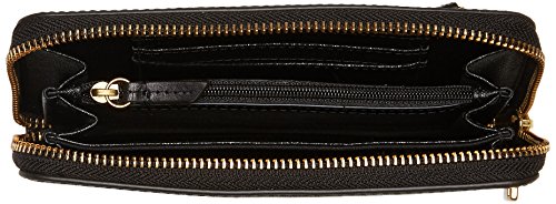 3 credit card slots, 1 media pocket, 2 gusseted pockets, 1 zipper pocket