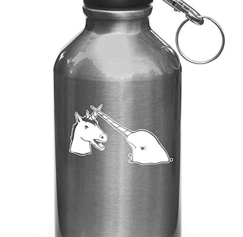 -. Title : Narwhal V Unicorn - Design 2 - Water Bottle Decal | Thermos Vinyl Decal Copyright Yadda-Yadda Design Co. (3.25"w x 2"h) (WHITE)