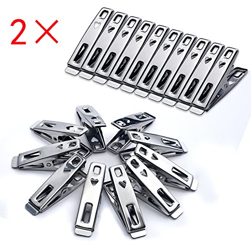 INHDBOX Stainless Steel Finger Clips Clothes Pins Hanging Clips Hooks for Towel Clothes Home/Office Use (40 Pack)