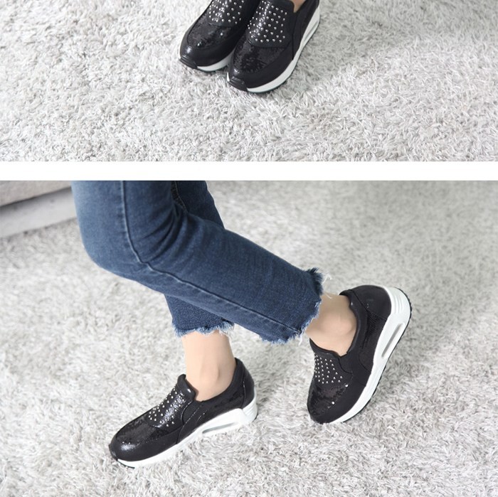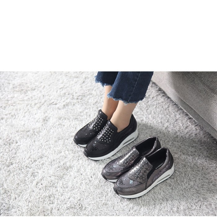 商品名:スリッポン レディース スニーカー キラキラ スタッズ 2017 秋冬 ファッション 靴 婦人靴