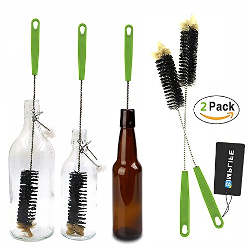 2-Pack Bottle Brush 17'' Long Brush for Cleaning Narrow Neck Beer Bottle, Wine, Kombucha, Decanter, Narrow Neck Brewing Bottles