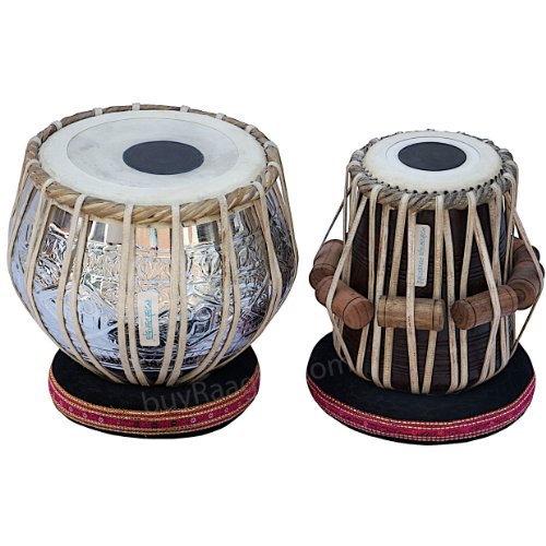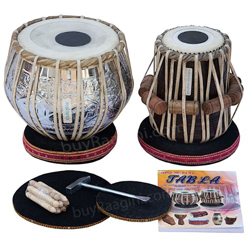 MAHARAJA Special Delhi Tabla Set, 3.5 Kg Pro Designer Brass Bayan, Finest Sheesham Dayan with Padded Bag, Book, Hammer, Cushions & Cover (PDI-BHA