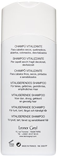 -. Binding : Health and Beauty -. Brand : Leonor Greyl Paris -. Color : no color -. Department : Beauty -. EAN : 3450870020030 -. Feature : Most Popular Shampoo sold -. Label : Leonor Greyl Paris -. Manufacturer : Leonor Greyl Paris -. MPN : 7 oz. -. PackageQuantity : 1 -. PartNumber : 7 oz. -. ProductGroup : Prestige Beauty -. ProductTypeName : LUXURY_BEAUTY -. Publisher : Leonor Greyl Paris -. Size : 7 oz -. SKU : april8407 -. Studio : Leonor Greyl Paris -. Title : Leonor Greyl Paris Bain Vitalisant B, 7 fl. oz.