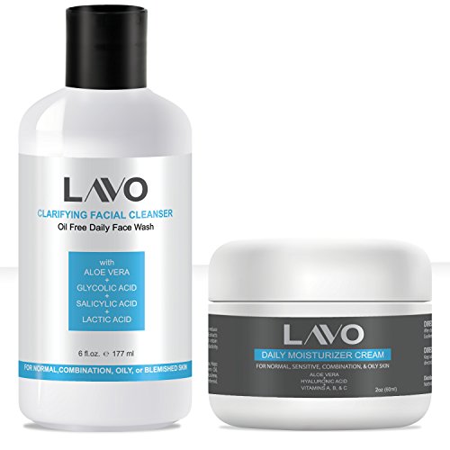BEST Glycolic Acid Face Wash (10%) & Face Moisturizer for Oily, Acne Prone, Combination, and Sensitive Skin (2 pack Bundle) - by LAVO