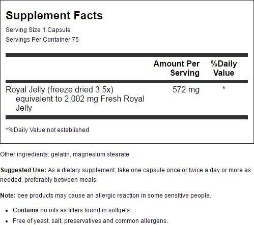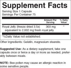 100% Pure Freeze Dried Fresh Royal Jelly - 2000 mg YS Eco Bee Farms 75 Caps